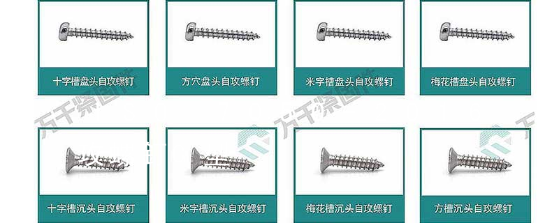 自切自攻螺釘有以下幾種型式:十字槽盤頭自切自攻螺釘,十字槽沉頭自切自攻螺釘。十字槽半沉頭自切自攻螺釘,六角頭自切自攻螺釘。3、自擠自攻螺釘(自攻鎖緊螺釘)自擠自攻螺釘的螺紋一般為機螺紋,很少采用自攻螺紋。在扳擰