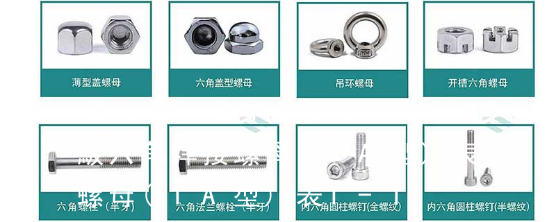 1、不銹鋼國標螺母的標準尺寸為M1.6-M64。不銹鋼國標螺母包括:六角螺母(GB6170/DIN934)、薄螺母(GB6172/DIN439)、重型螺母(公制、美制)、尼龍鎖緊螺母(DIN985-DIN982厚型)、全金屬鎖緊螺母(DIN980M),蓋型螺 · 1型非金屬嵌件六角鎖緊螺母細牙GB /T 889.2-2000 · 蓋形螺母GB 923-88 · 1型六角螺母GB /T 6170-2000 · 1型六角螺母細牙GB /T 6171-2000 · 六角薄螺母GB /T 6172.1-2000 · 非金屬嵌件六角鎖緊