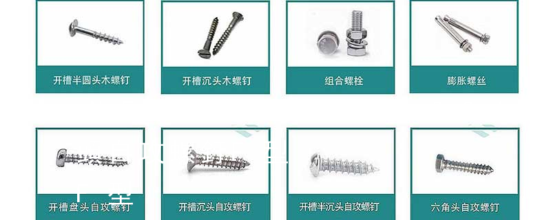 基本方法有兩種:外扳和內扳。一般而言,外扳擰的扭矩大于任何形式的內扳擰(內槽)。外扳擰:六角,六角法蘭面,六角凸緣,六角花形等;內扳擰:一字槽,十字槽H型,十字槽Z型,十字槽F型,四方槽,復合槽,內花鍵,內 沉頭內六角螺釘(平杯)、半圓頭內六角螺釘(圓杯)、十字槽盤頭機螺釘、十字槽沉頭機螺釘、十字槽大扁頭機螺釘、十字槽盤頭自攻釘、十字槽沉頭自攻釘、十字槽大扁頭自攻釘、全牙絲桿(牙條)、六角螺母、法蘭